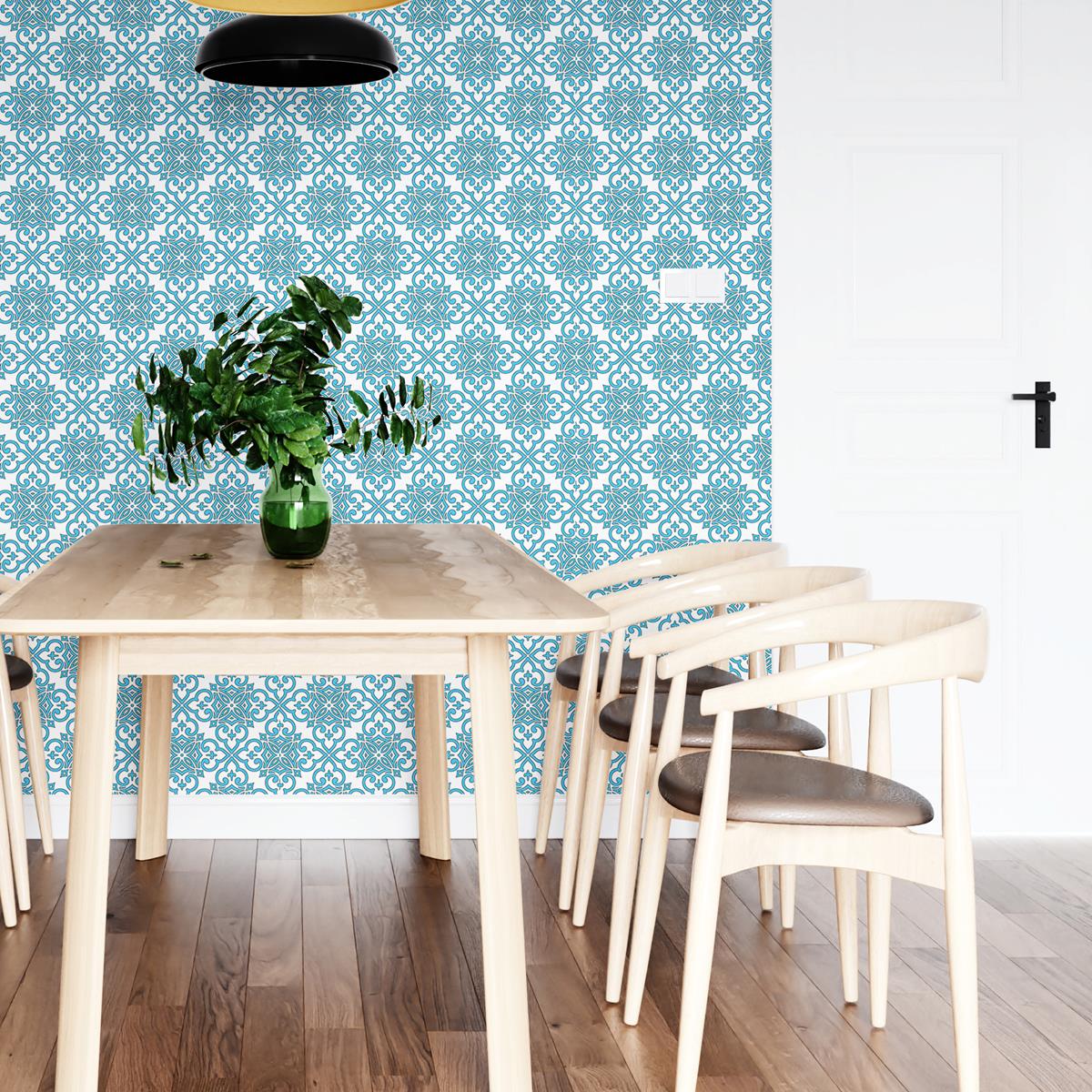 Papel de Parede Adesivo Arabesco Mandala Azul N04142