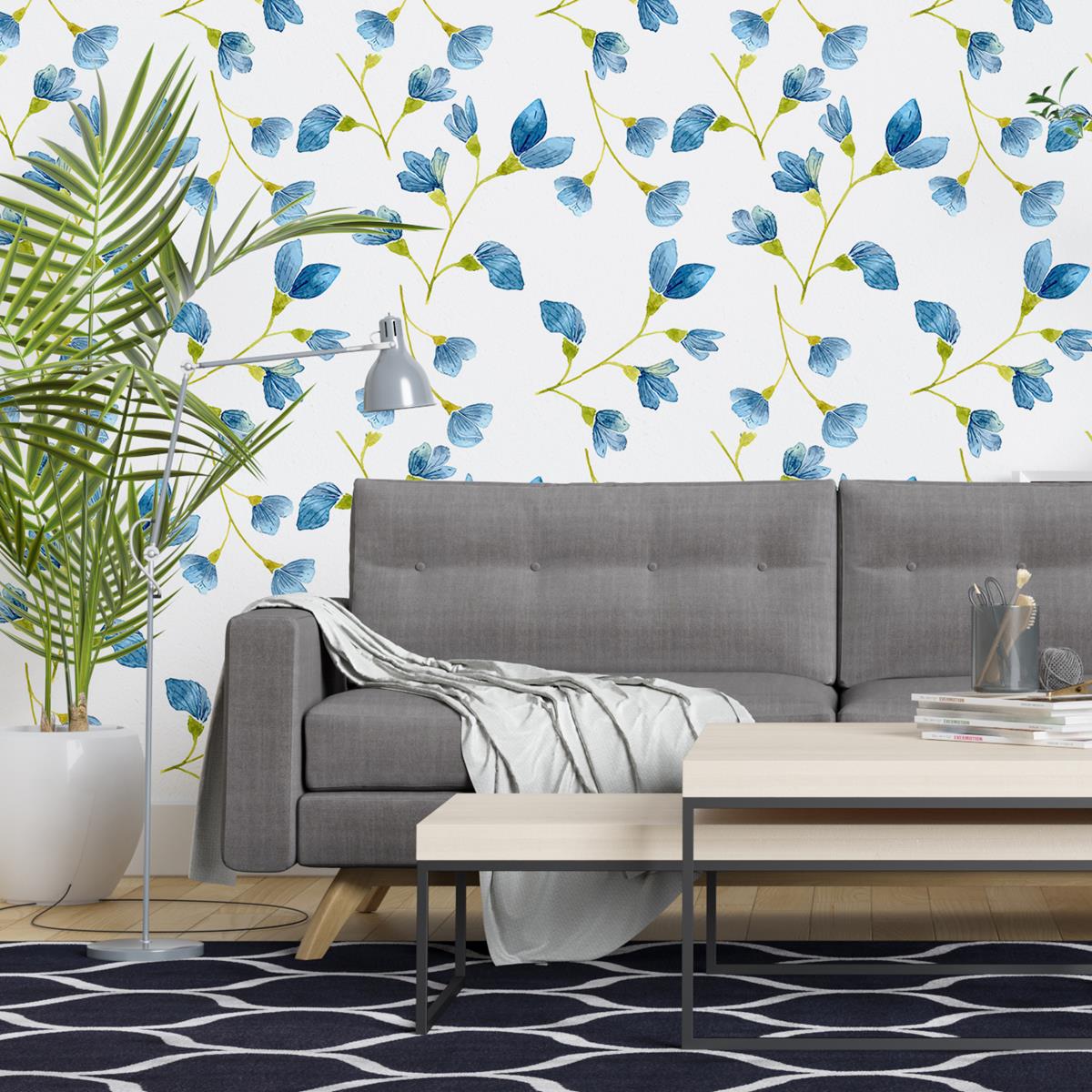 Papel de Parede Adesivo Flor Azul Aquarela N04168