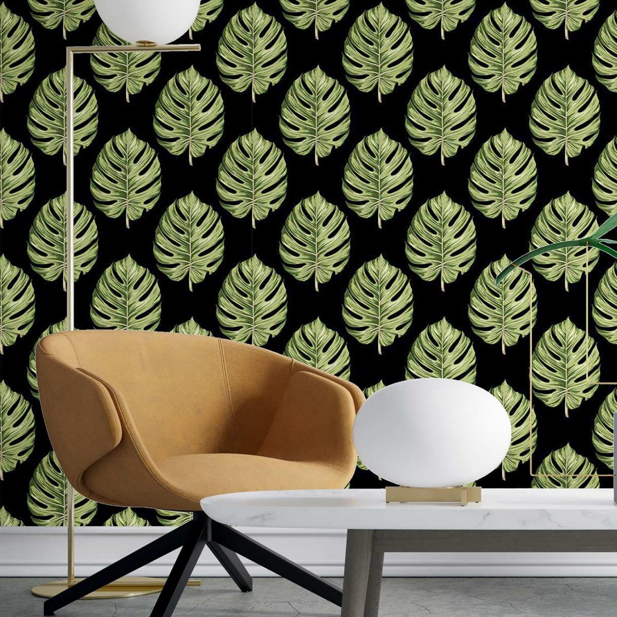 Papel de Parede Adesivo Folhas Verdes Espaçadas N03096 Estampas com folhas remetem a natureza e ficam perfeitas em qualquer ambiente.