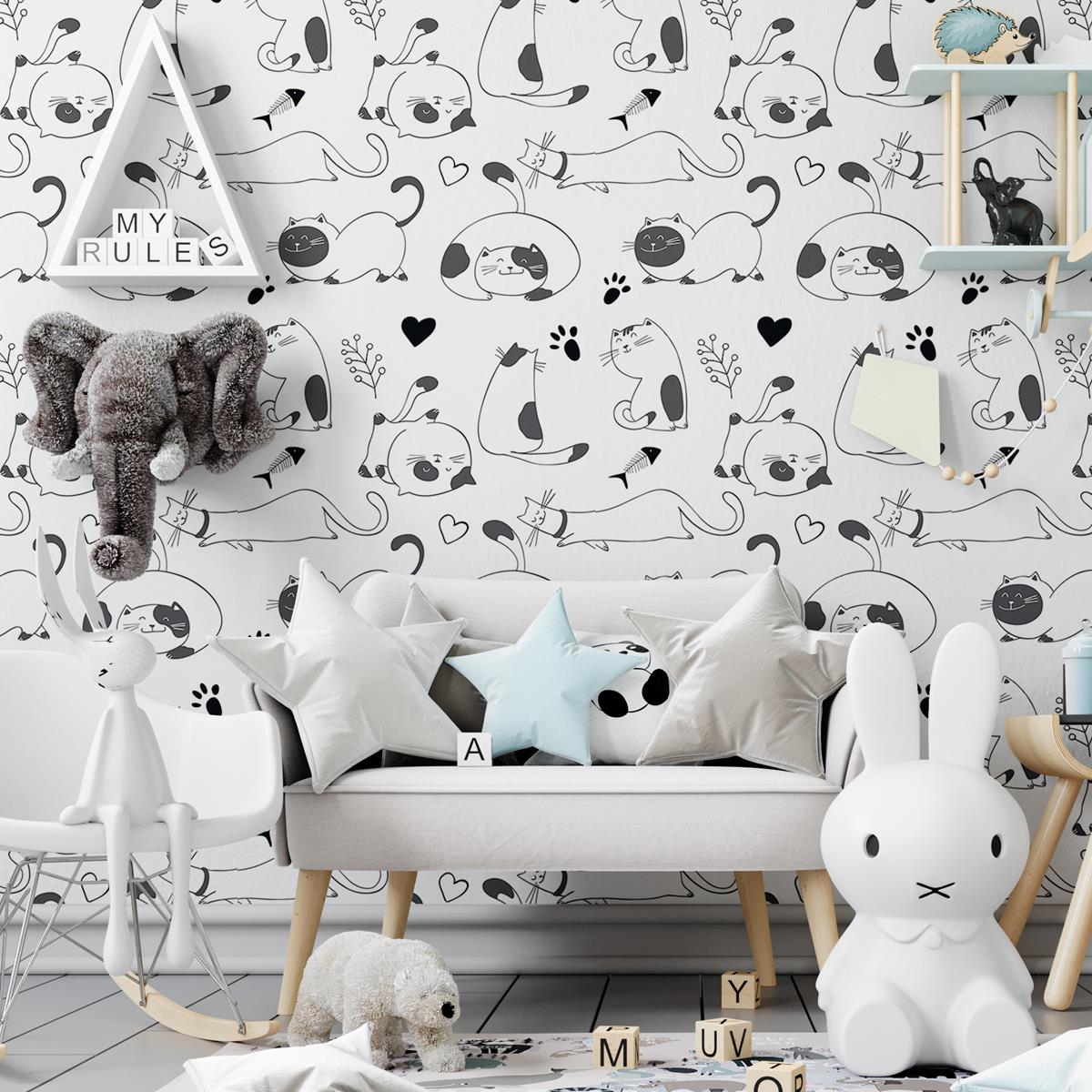 Papel de Parede Adesivo Gatinhos Preto e Branco N04045