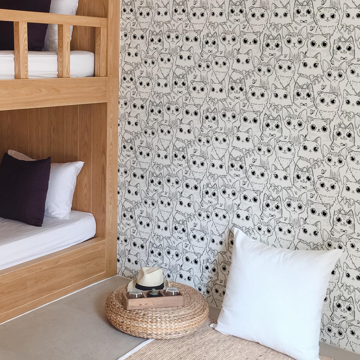 Papel de Parede Adesivo Gatinhos Preto e Branco N04052